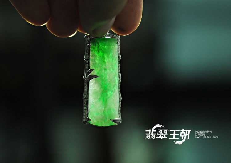 糯冰种阳绿缅甸翡翠镶白金节节高挂件