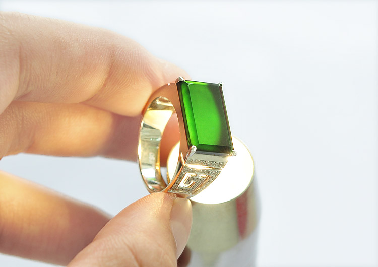 首页 >> 玻璃种墨翠镶白金钻石戒指