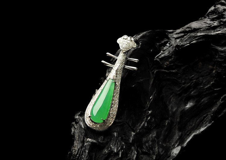 首页 >> (超值推荐)冰种翠色镶白金钻石琵琶胸坠