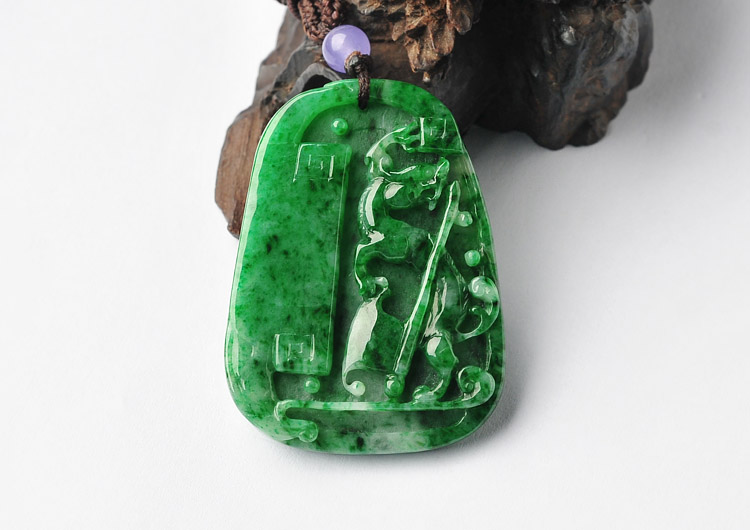 首页 >> (超值推荐)糯冰种翠色府中有龙挂件