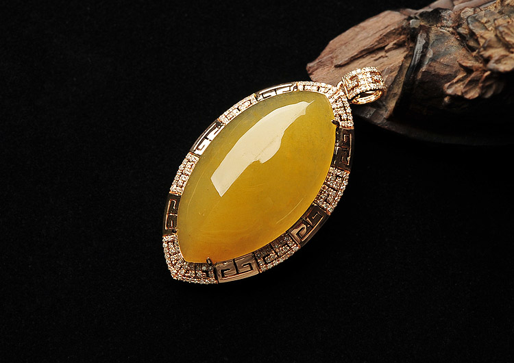 首页 >> (超值推荐)冰种黄翡镶玫瑰金钻石马眼胸坠