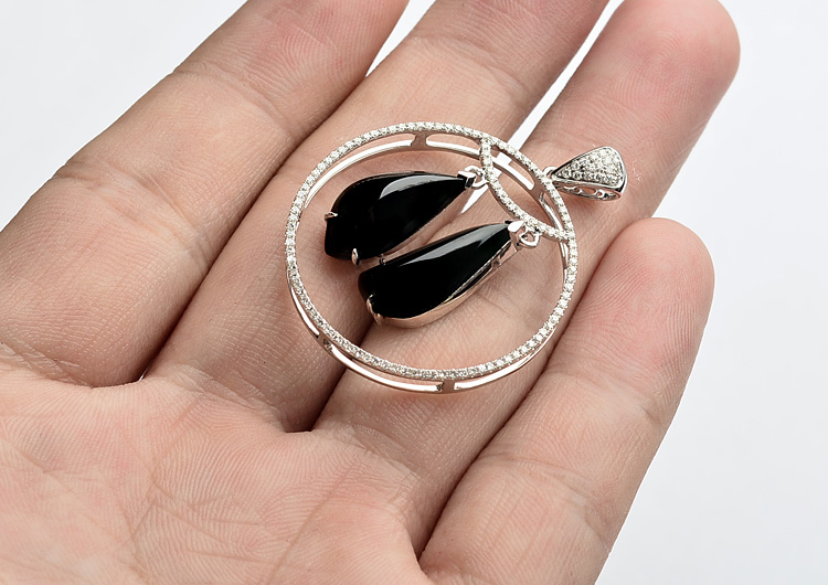 玻璃种墨翠镶白金胸坠(真钻)