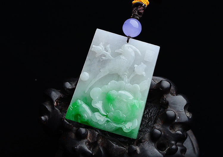 首页 >> (超值推荐)糯冰种翠色鸟语花香挂件
