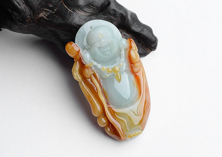 首页 >> 糯冰种晴水黄翡布袋和尚挂件
