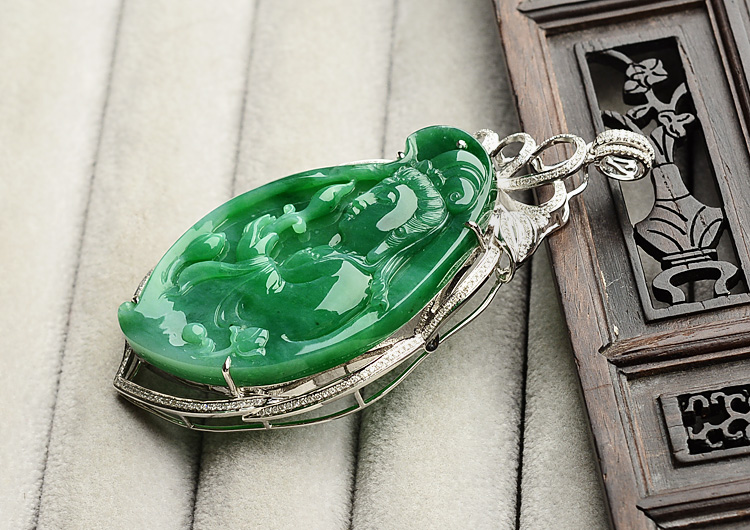 首页 >> (超值推荐)糯种阳绿镶白金观音胸坠(真钻)