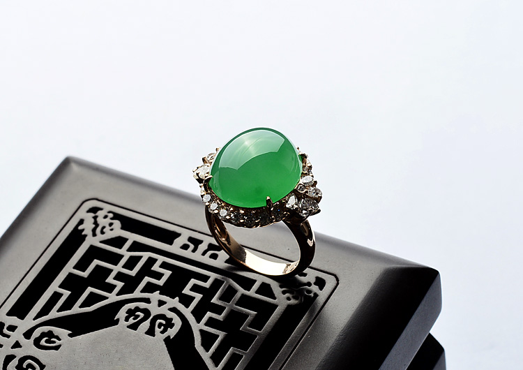 首页 >> (超值推荐)冰种正阳绿镶玫瑰金钻石戒指