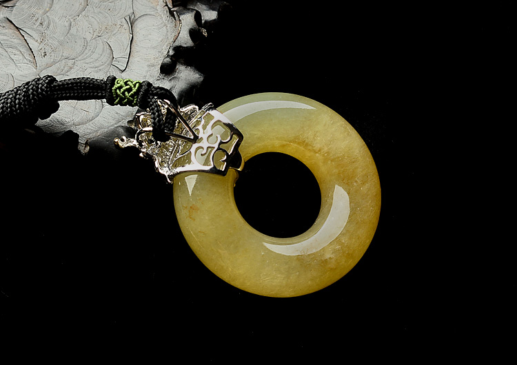首页 >> 糯冰种黄翡镶彩金钻石平安环胸坠