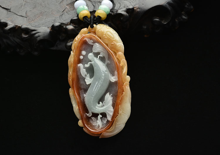 首页 >> (超值推荐)糯冰种褐黄翡年年有余挂件