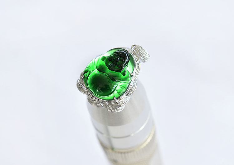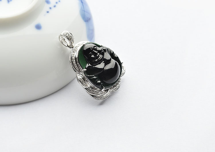 首页 >> (超值推荐)冰玻种墨翠镶白金钻石玉佛胸坠