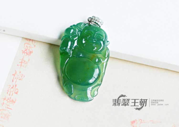 冰玻种油青色缅甸翡翠逍遥佛挂件