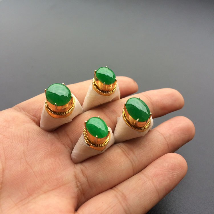首页 >> 糯冰种阳绿戒面(一批4颗)