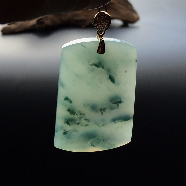 首页 >> 糯冰种飘花平安无事牌挂件(金扣)