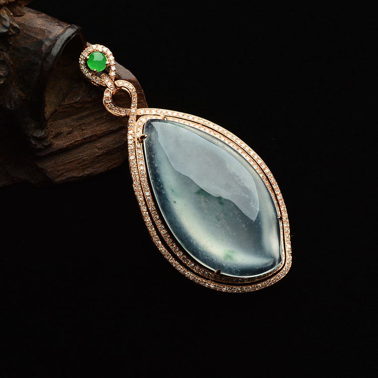 冰玻种飘花镶玫瑰金钻石随形胸坠