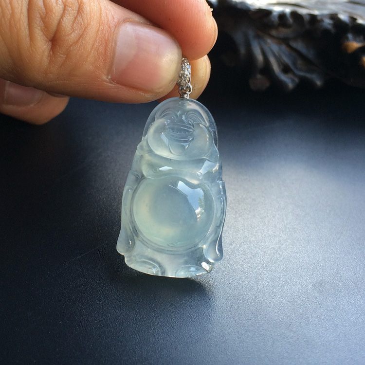 首页 >> 冰种淡晴水站佛挂件(金扣)