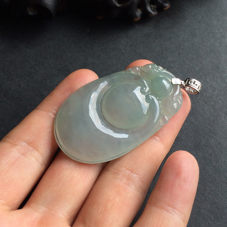 首页 >> 糯冰种晴水双龙如意挂件(金扣)