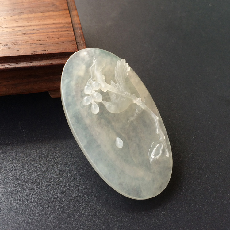 首页 >> (超值推荐)冰种淡晴水喜上枝头挂件