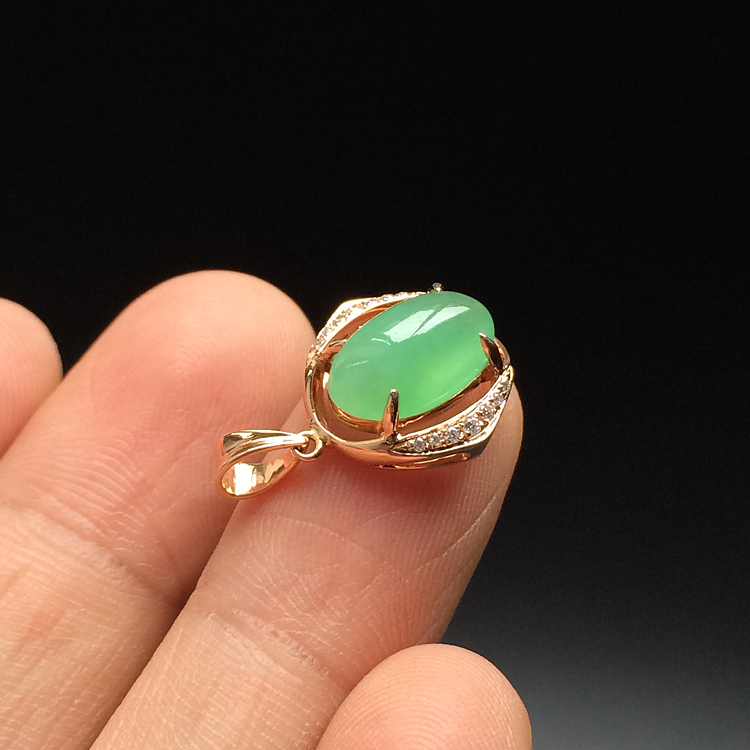 首页 >> (超值推荐)冰种黄秧绿镶玫瑰金钻石胸坠