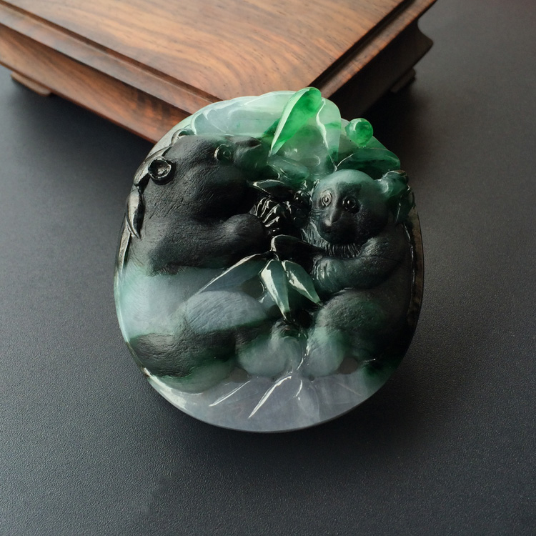 (超值推荐)糯冰种墨色飘翠母子情深挂件
