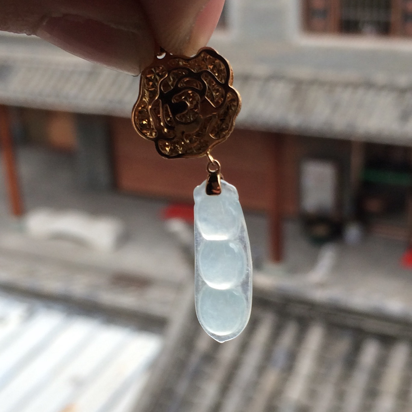 首页 >> (超值推荐)冰种无色镶玫瑰金福豆胸坠