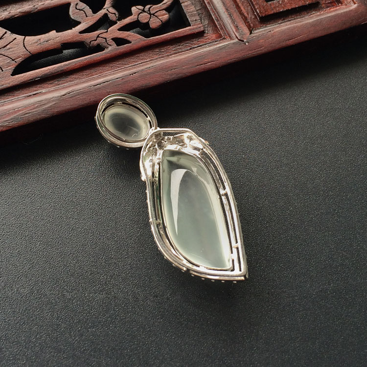 首页 >> (超值推荐)冰玻种淡晴水镶白金钻石随形胸坠