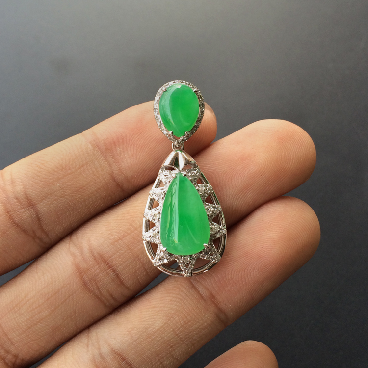 首页 >> (超值推荐)冰种翠色镶白金钻石水滴胸坠