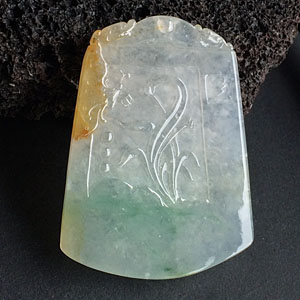 首页 >> 冰种黄翡飘花兰花牌挂件