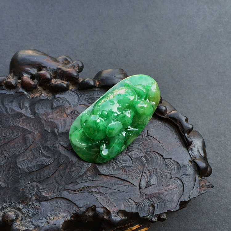 首页 >> (超值推荐)糯冰种翠色带黄翡和和美美挂件