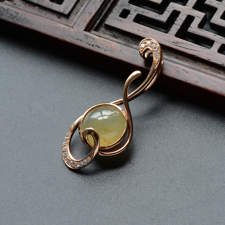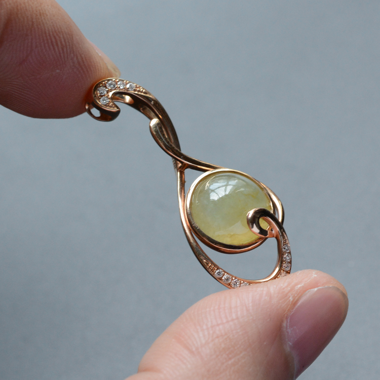 首页 >> (超值推荐)冰种黄翡镶玫瑰金钻石心心甜蜜胸坠