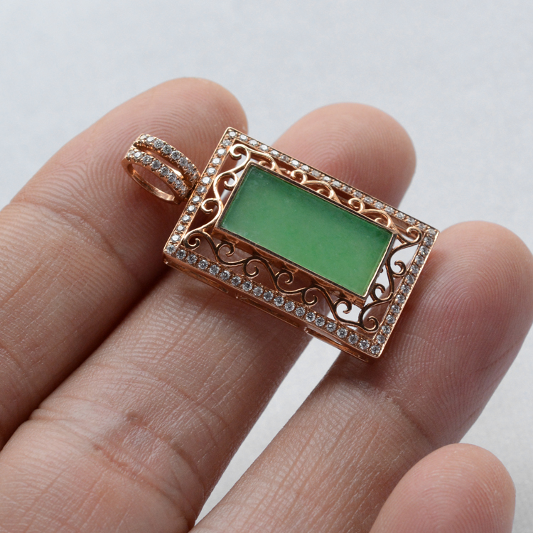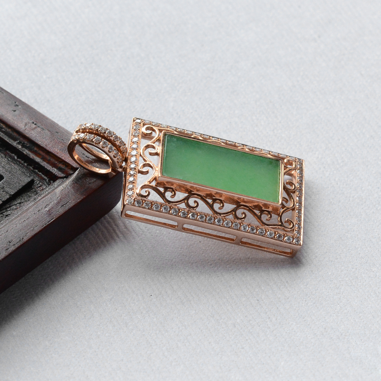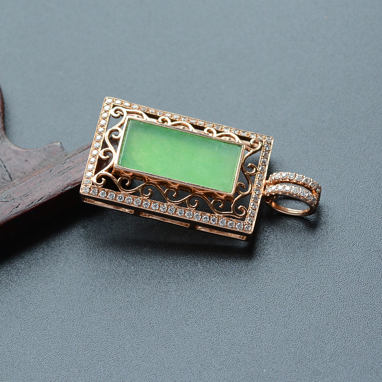 首页 >> (超值推荐)冰种黄秧绿镶玫瑰金钻石平安无事胸坠