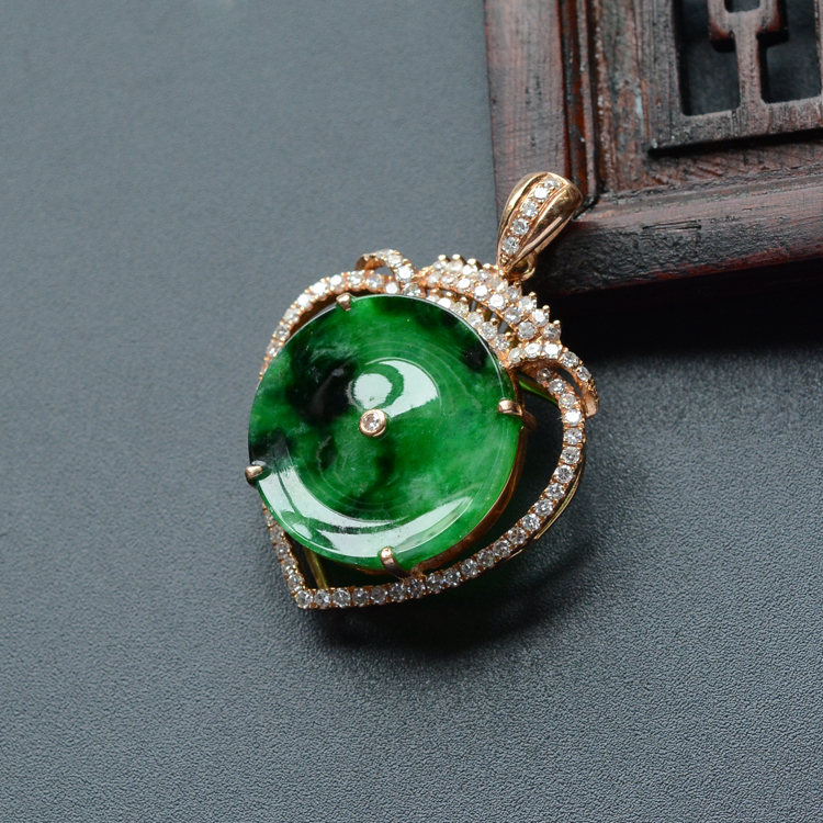 (超值推荐)糯冰种廯加绿镶玫瑰金钻石心念平安胸坠