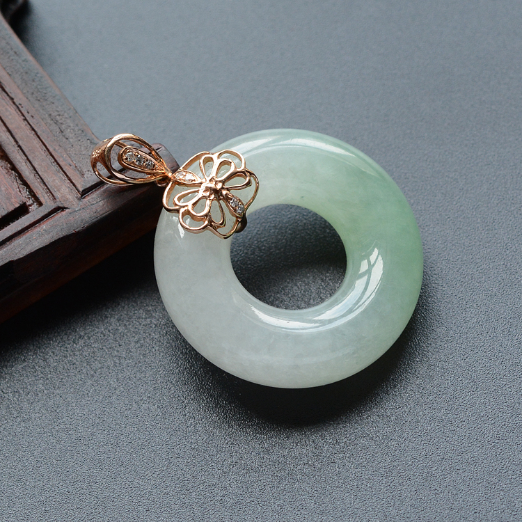 首页 >> (超值推荐)糯冰种晴水镶玫瑰金钻石平安环胸坠