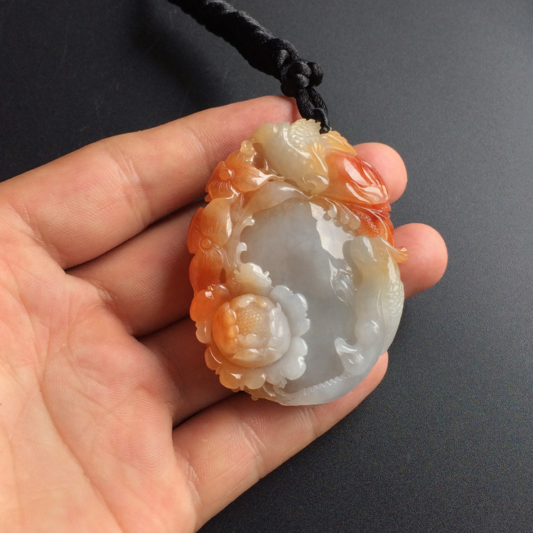 首页 >> (超值推荐)糯冰种红黄翡花开富贵挂件