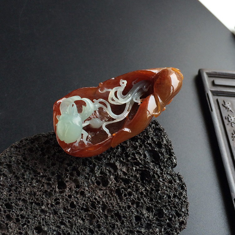 首页 >> (超值推荐)糯冰种褐黄翡富甲天下挂件