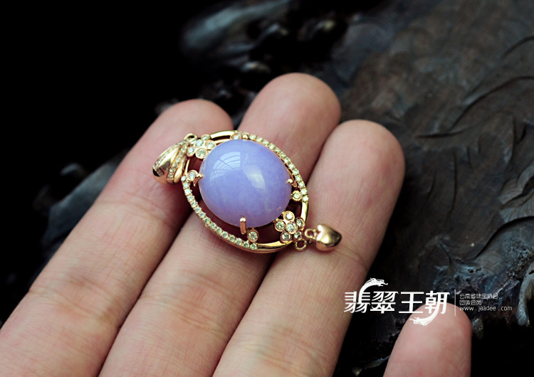 糯冰种紫罗兰缅甸翡翠包玫瑰金镶真钻胸坠