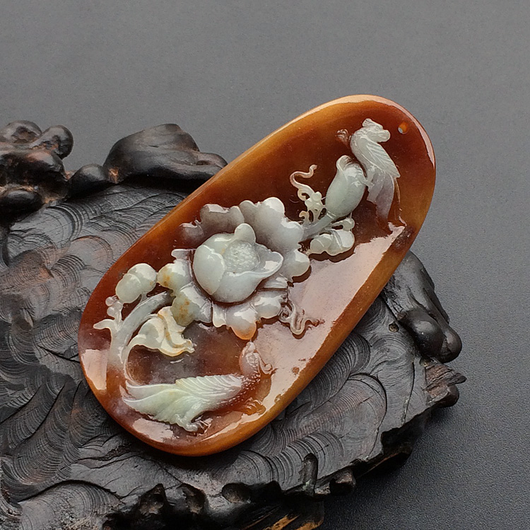首页 >> (超值推荐)糯冰种褐黄翡花开富贵挂件