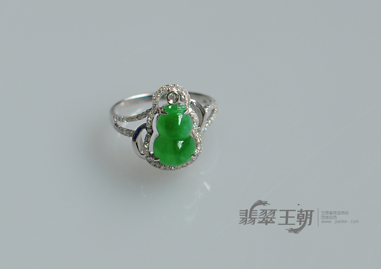 糯冰种阳绿满绿缅甸翡翠镶白金葫芦戒指