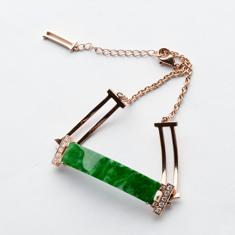 首页 >> (超值推荐)糯冰种浓绿镶玫瑰金钻石手链