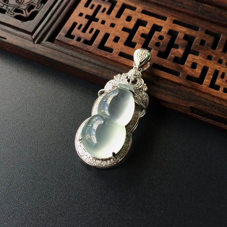 首页 >> (超值推荐)冰种略飘花镶白金钻石葫芦胸坠