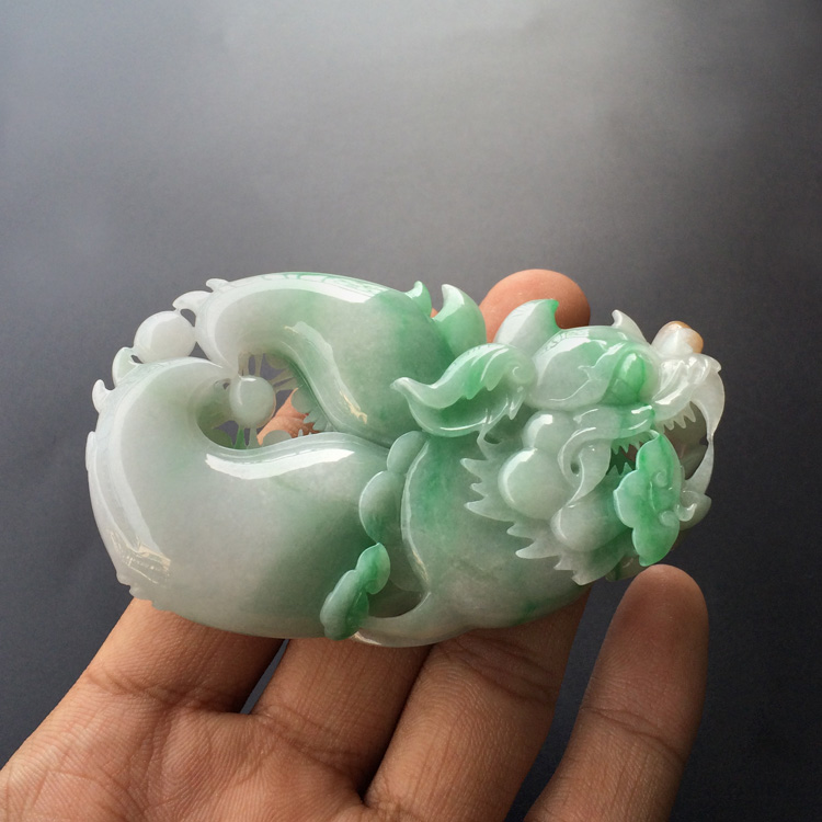 (超值推荐)糯冰种黄加绿龙头鱼手玩件