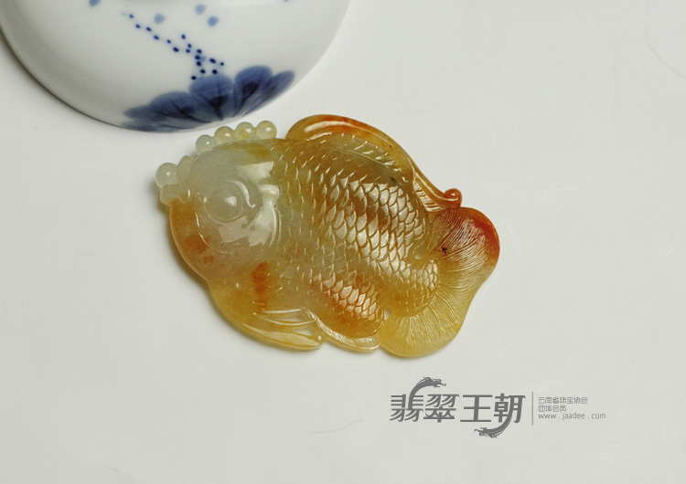 首页 >> 糯冰种红黄翡缅甸翡翠鱼挂件