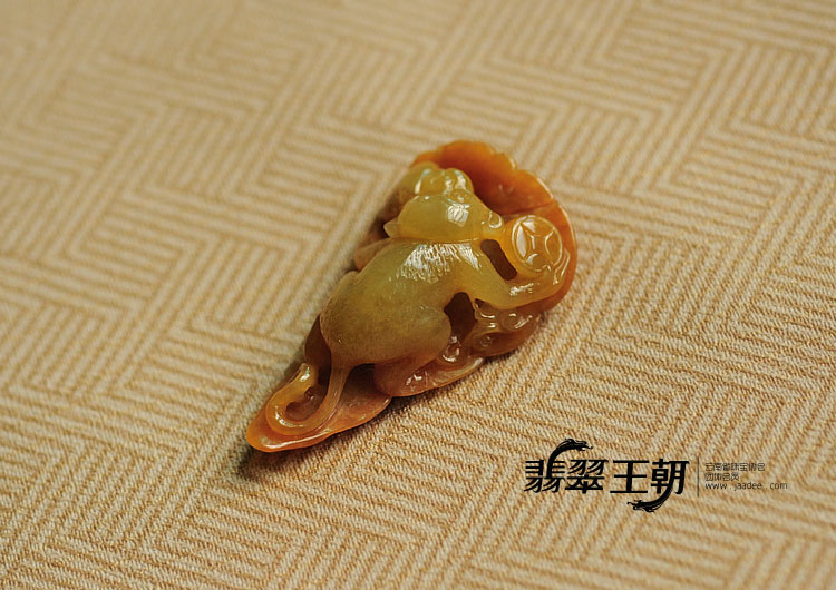 细糯种黄翡缅甸翡翠灵猴献寿挂件