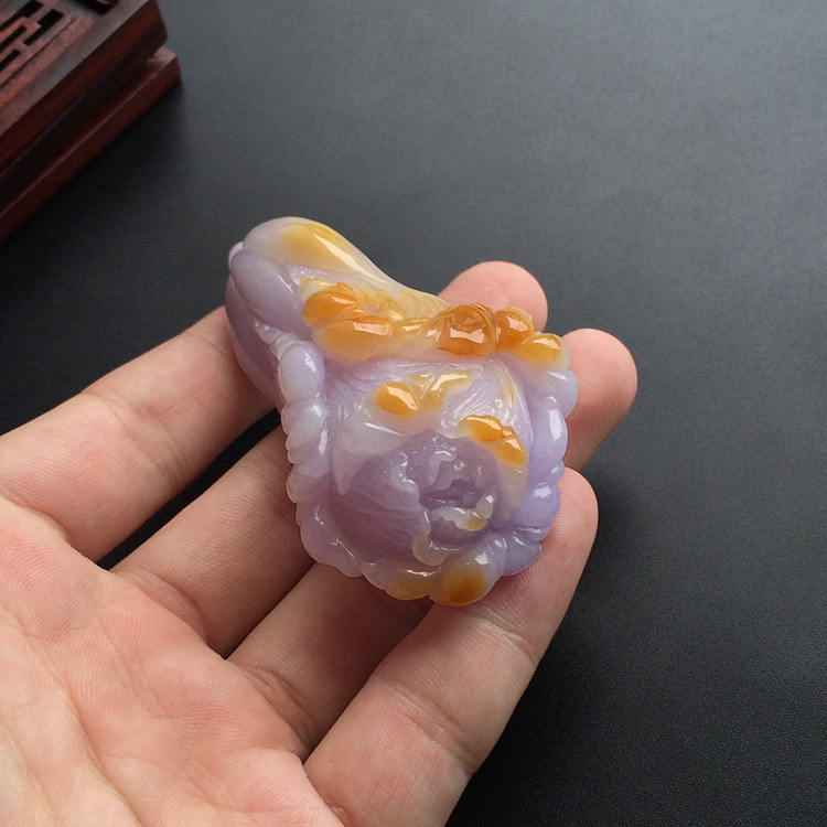 首页 >> (超值推荐)糯冰种紫罗兰黄翡白菜挂件/手玩件