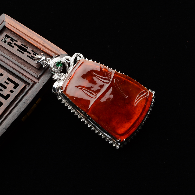 首页 >> (超值推荐)冰种红翡镶白金钻石节节高胸坠
