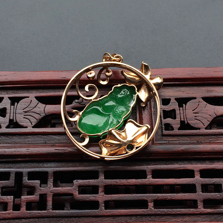 首页 >> 糯冰种翠色镶玫瑰金钻石金鱼胸坠