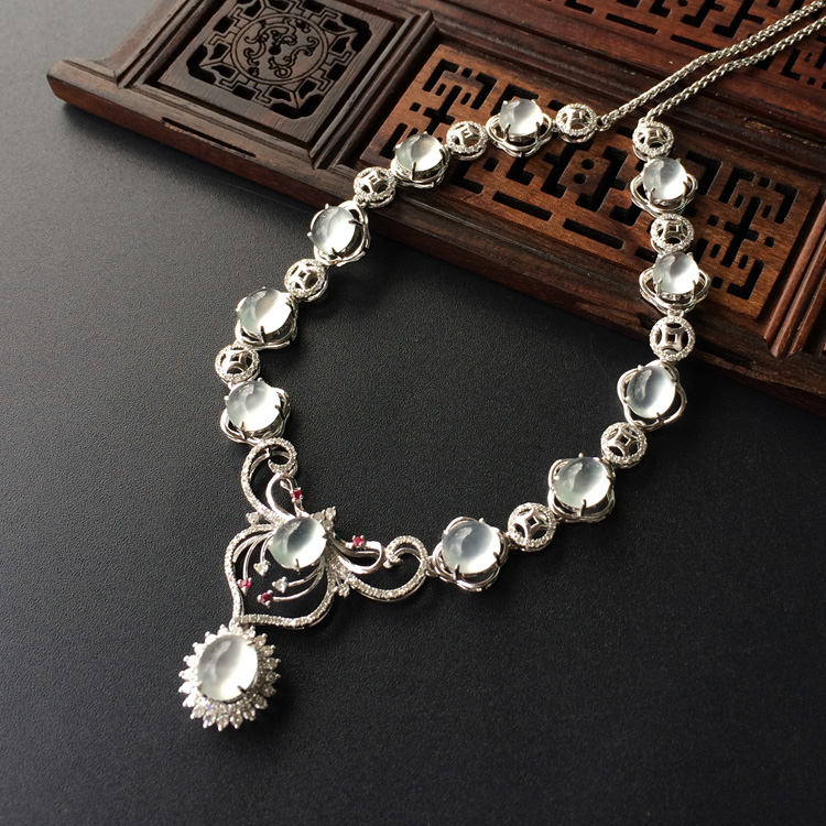 首页 >> (超值推荐)冰玻种无色镶白金钻石项链