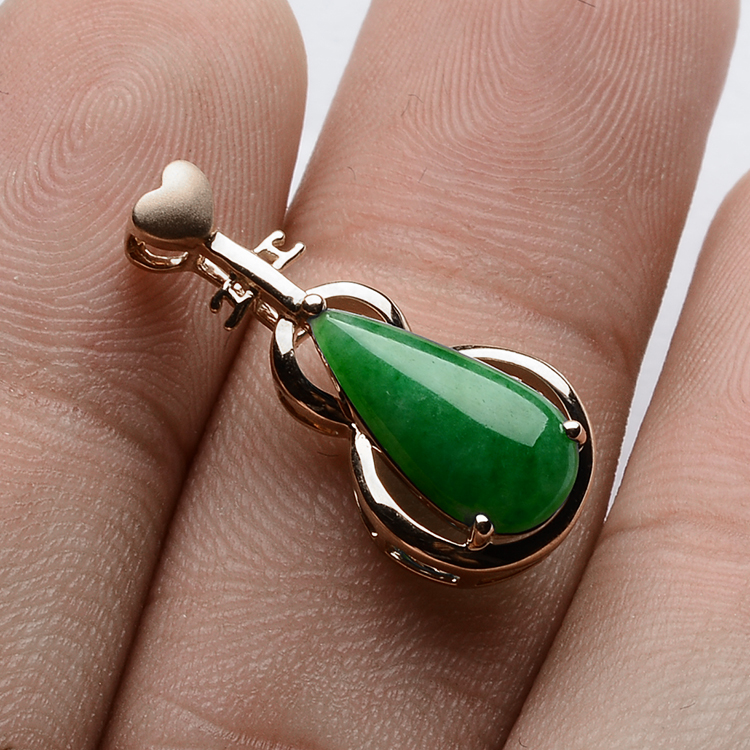 (超值推荐)糯冰种阳绿镶玫瑰金悦心胸坠