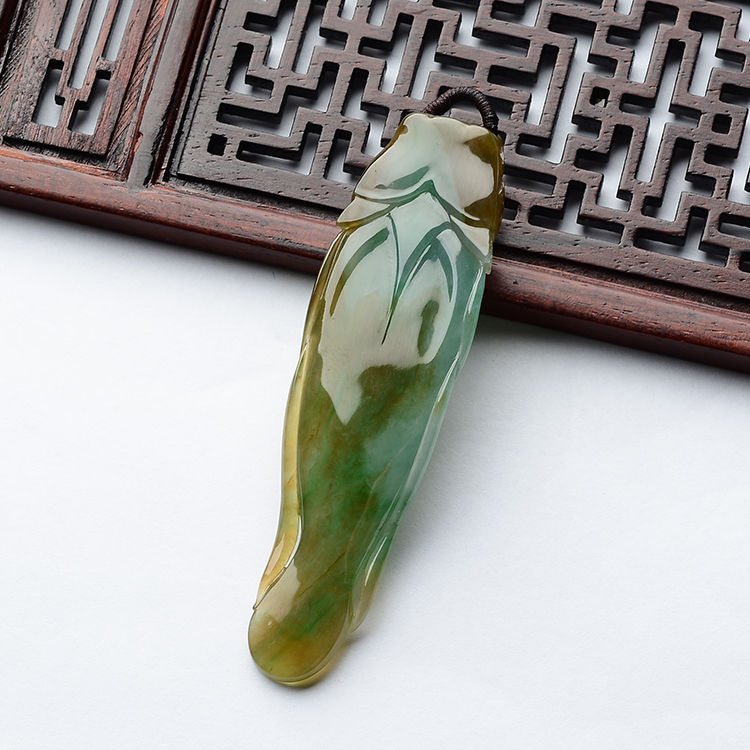 首页 >> (超值推荐)糯冰种褐黄翡略飘翠年年有余挂件