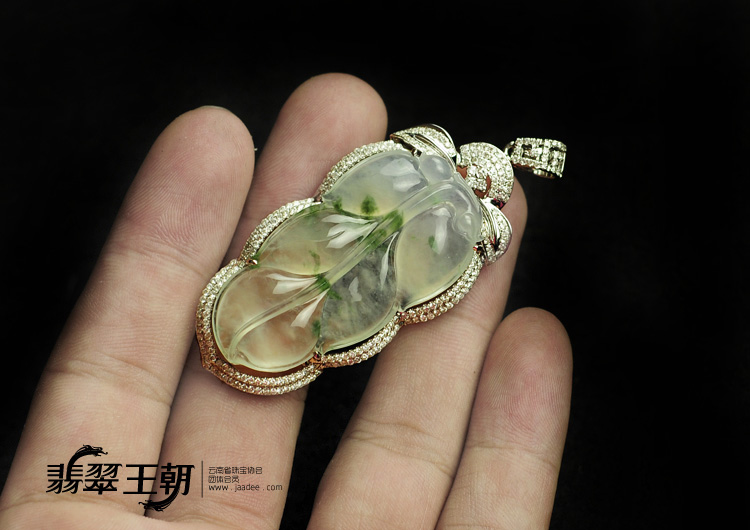 冰玻种飘花缅甸翡翠镶白金“金枝玉叶”挂件