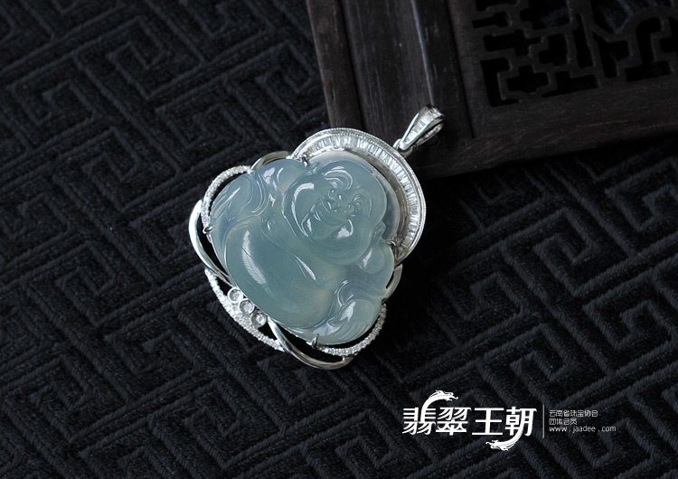 首页 >> 冰种蓝晴水缅甸翡翠镶白金玉佛挂件