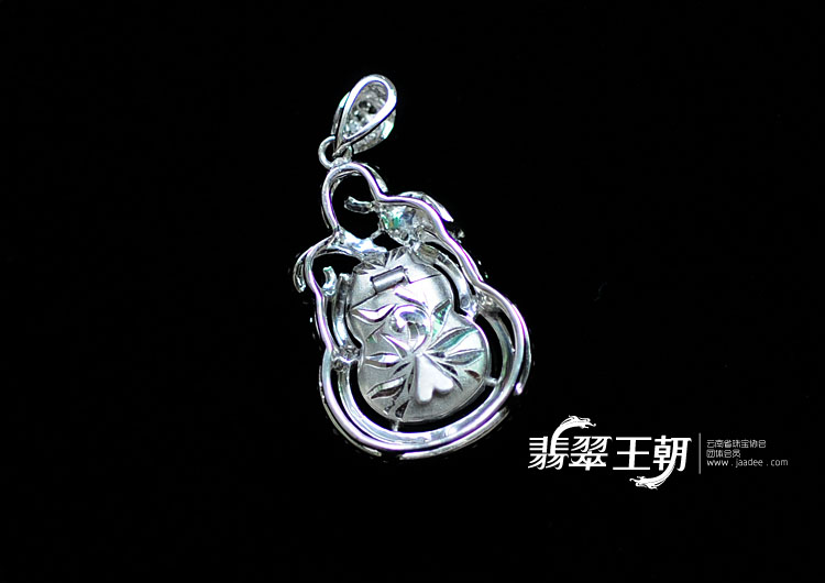 糯冰种阳绿满绿缅甸翡翠镶白金葫芦胸坠